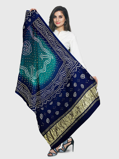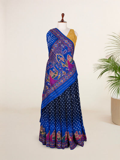 Firozi And Blue Bandhani Semi-Stitched Lehenga in Synthetic