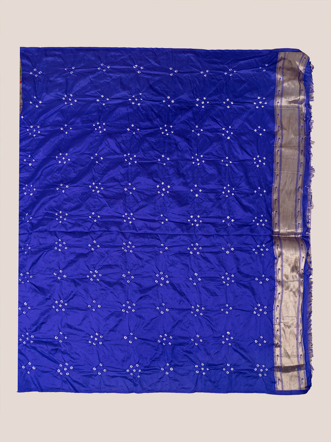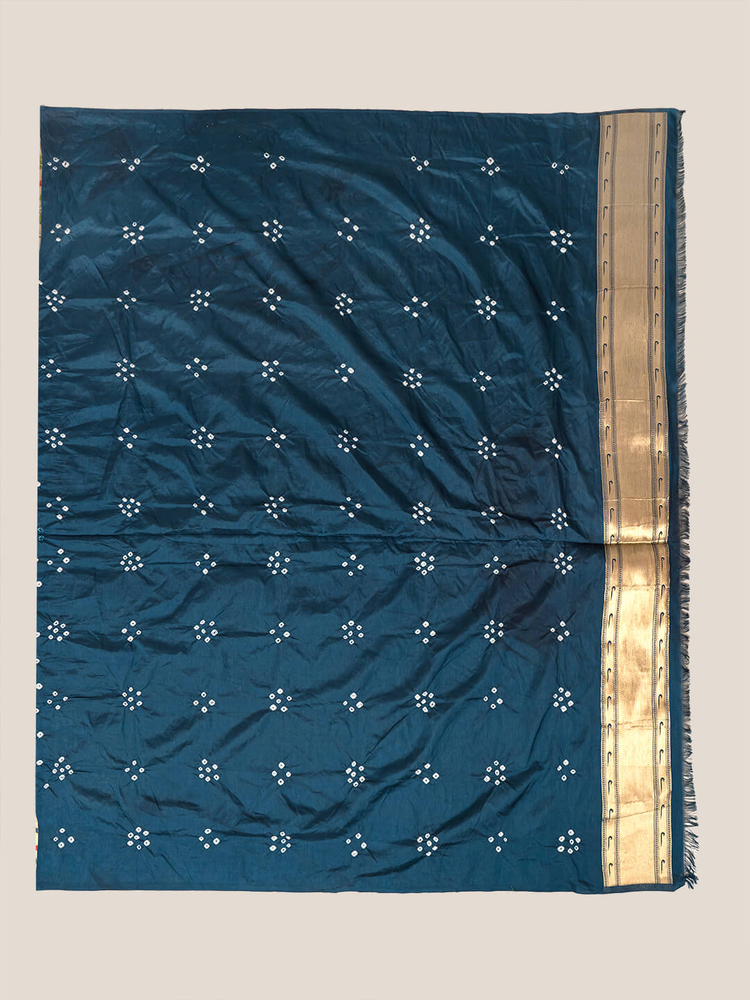 - This saree has a traditional gold bar at the Pallav often referred as 'Lagdi Patta' with intricate small Bandhani dots all over the saree. It is a must in your saree collection.