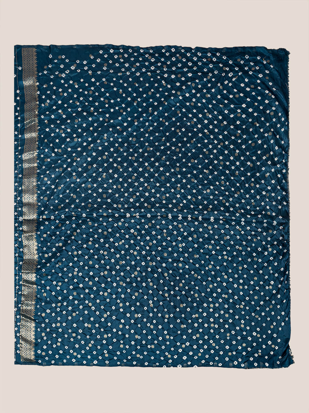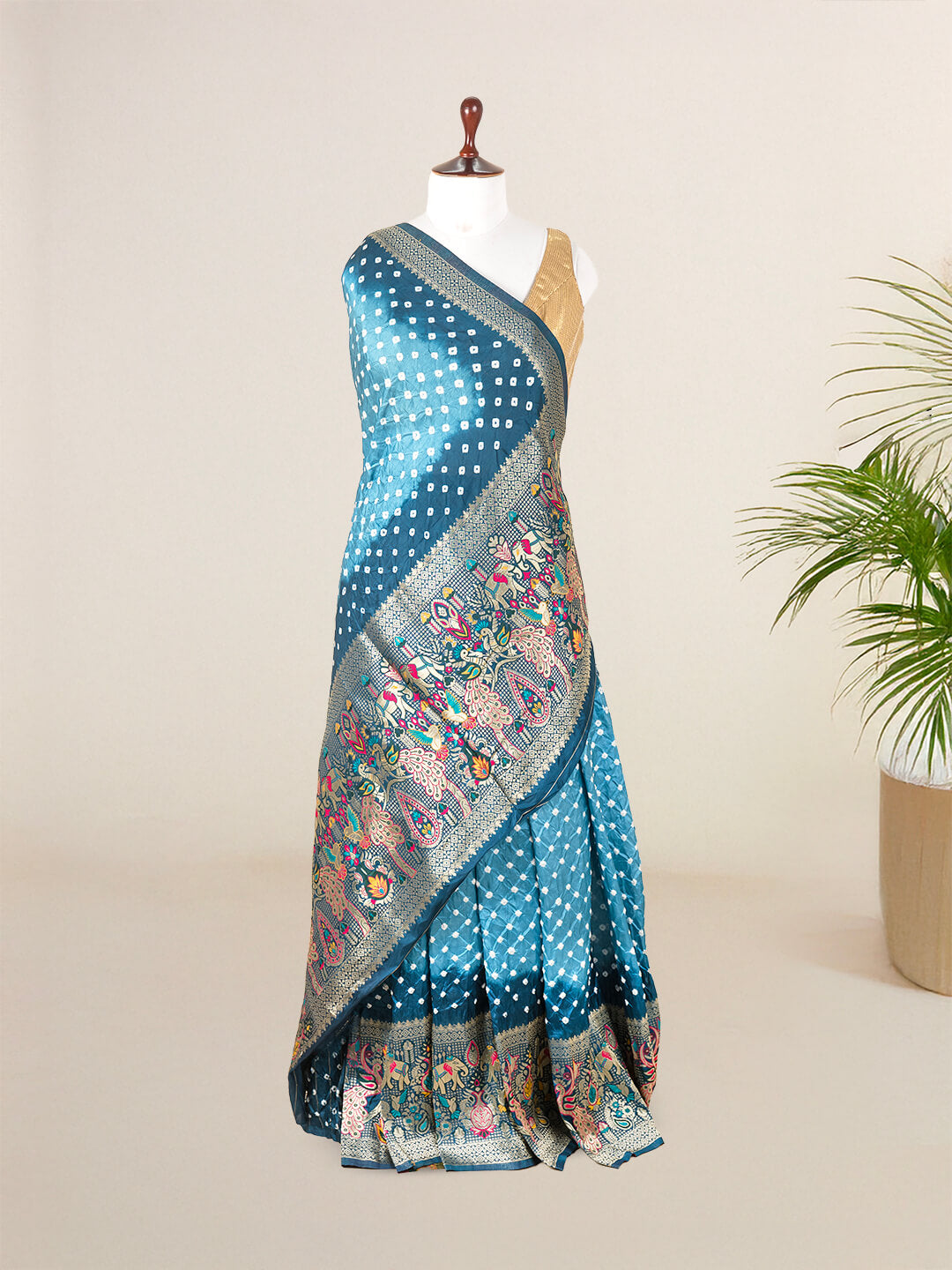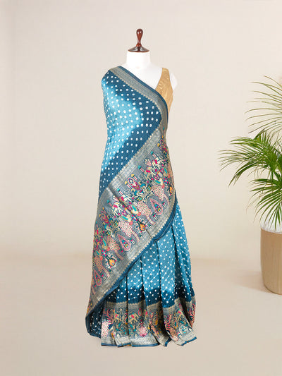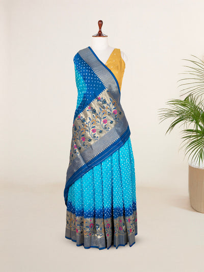 Aqua And Firozi Paithani Bandhani Saree in Synthetic
