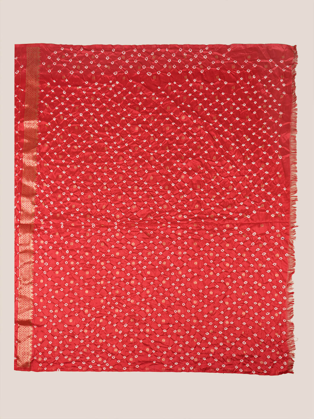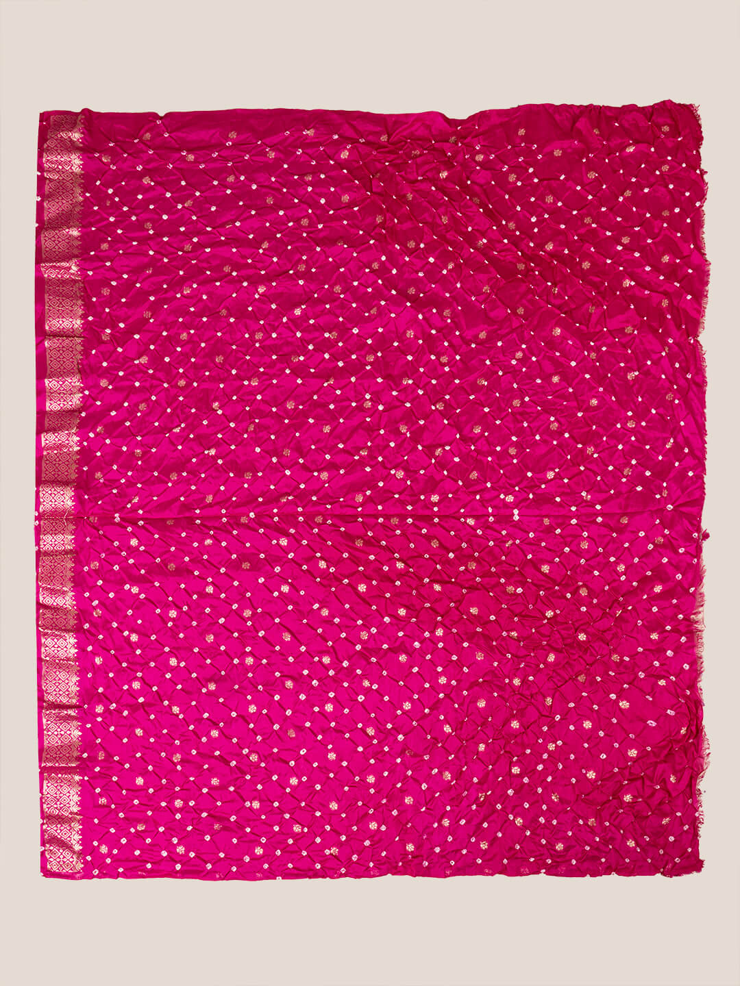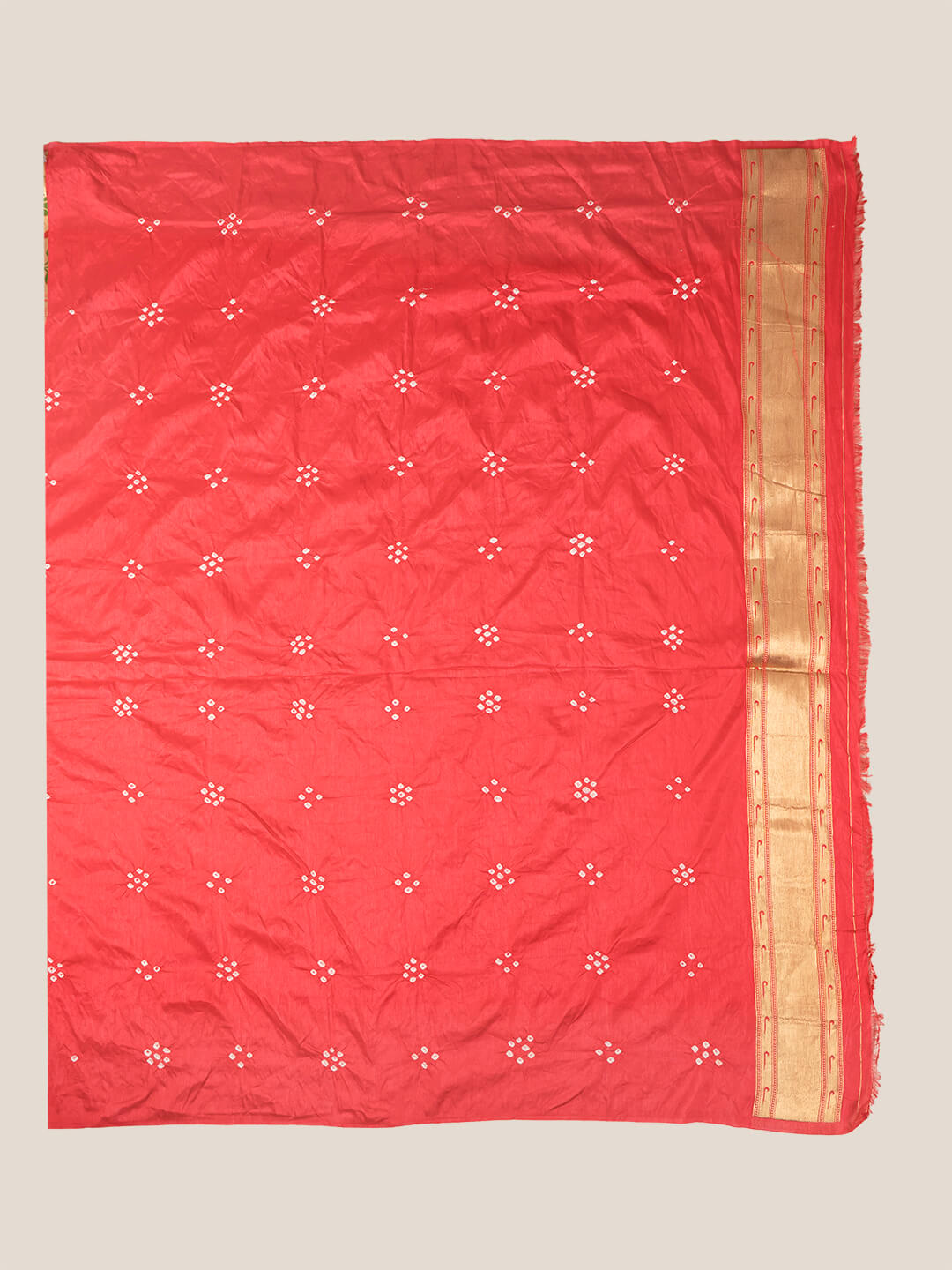 - This Saree is a fusion of Paithani and bandhani.The Pallu and Border of the Saree is Inspired by our Favouite Paithani weave with all traditional motives. This Saree has been tied-dyed in the Classic Kutchi Bandhani technique.