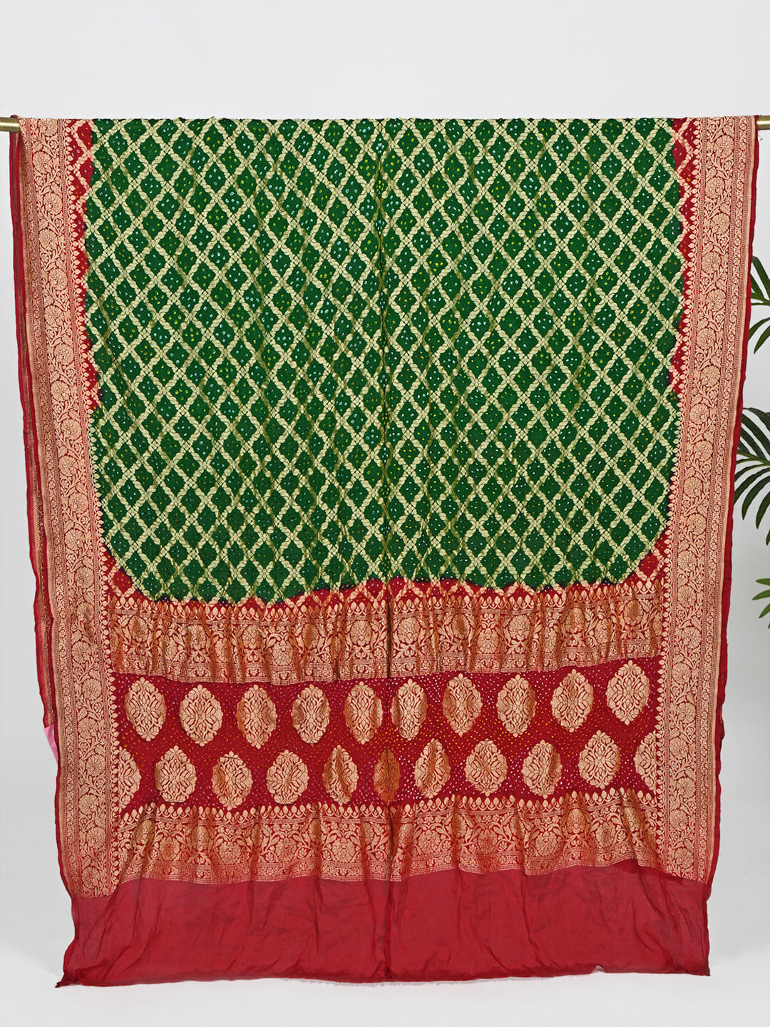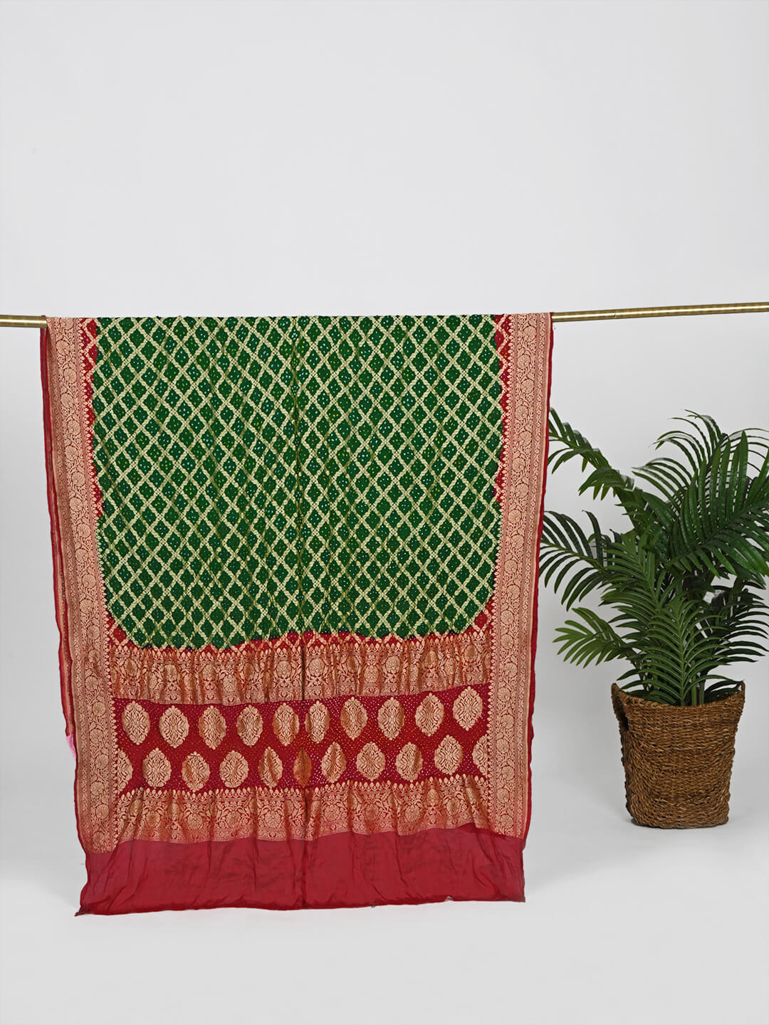 Green And Red Jaal Bandhani Dupatta in Georgette