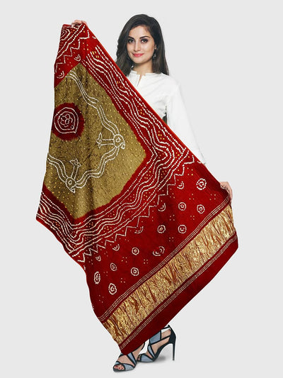 - This Dupatta has a traditional gold bar at the Pallav often referred as 'Lagdi Patta' with traditional bandhani design all over the Dupatta. It gives a simple and classy look.