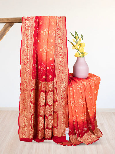Orange And Red Banarasi Bandhani Saree in Georgette