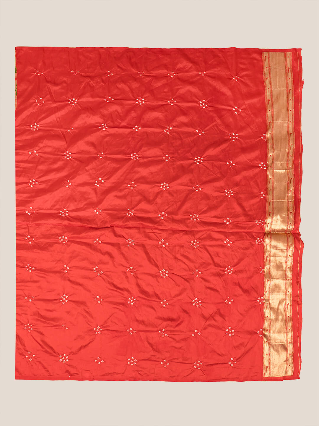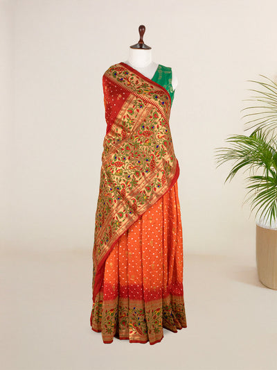 Orange And Red Paithani Bandhani Saree in Synthetic