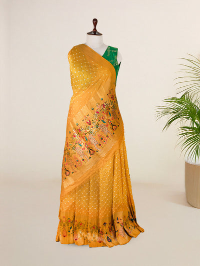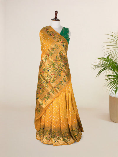 - All over zari floral work covers the body of the saree to create rich and dense design. Wrap yourself in these yards of our heritage. A truly exquisite saree.