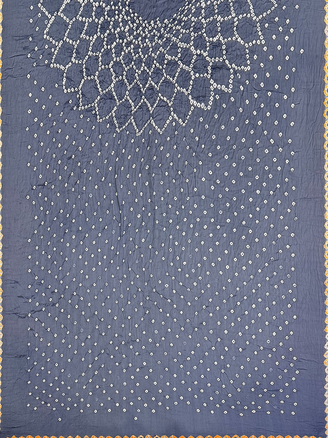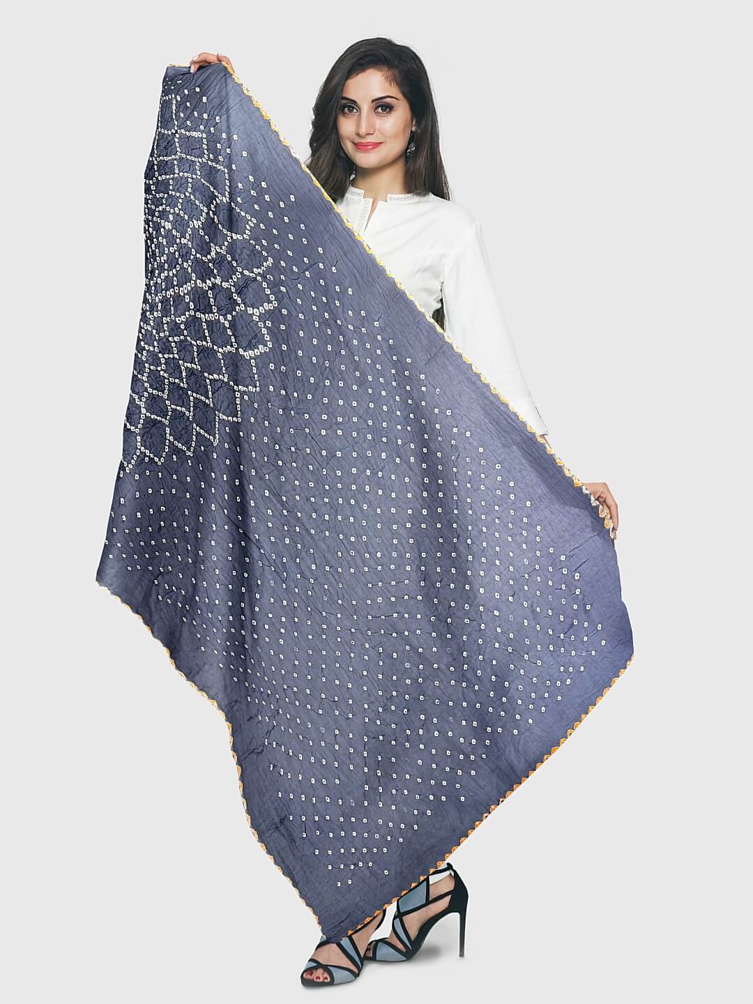 Our authentic Bandhani dupattas / Bandhej dupattas are made using Tie and dye technique. It involves two major steps that require expertise and experience to create every single masterpiece on a yard of cloth. All types of textiles are used in this art, but the use of Gaji Silk, glossy vegetable-based silk is used for making opulent pieces. Our variety of Gaji Silk bandhani dupattas are procured from verified vendors to ensure best quality.