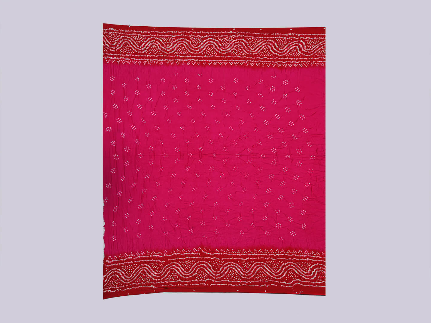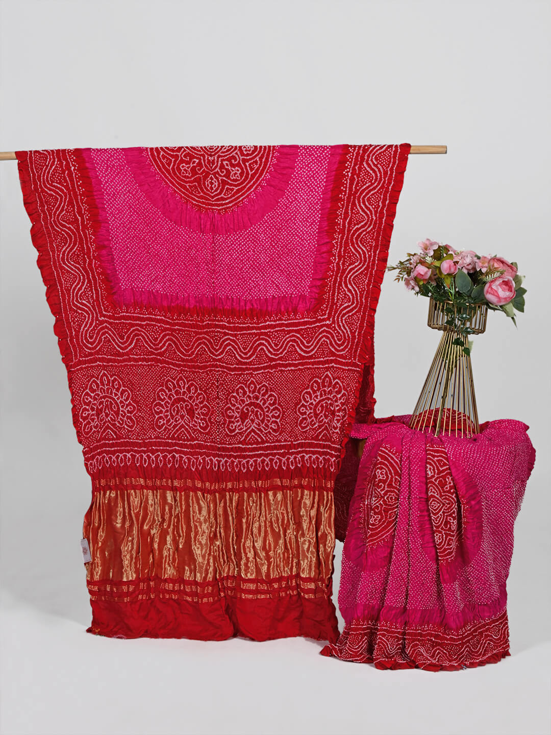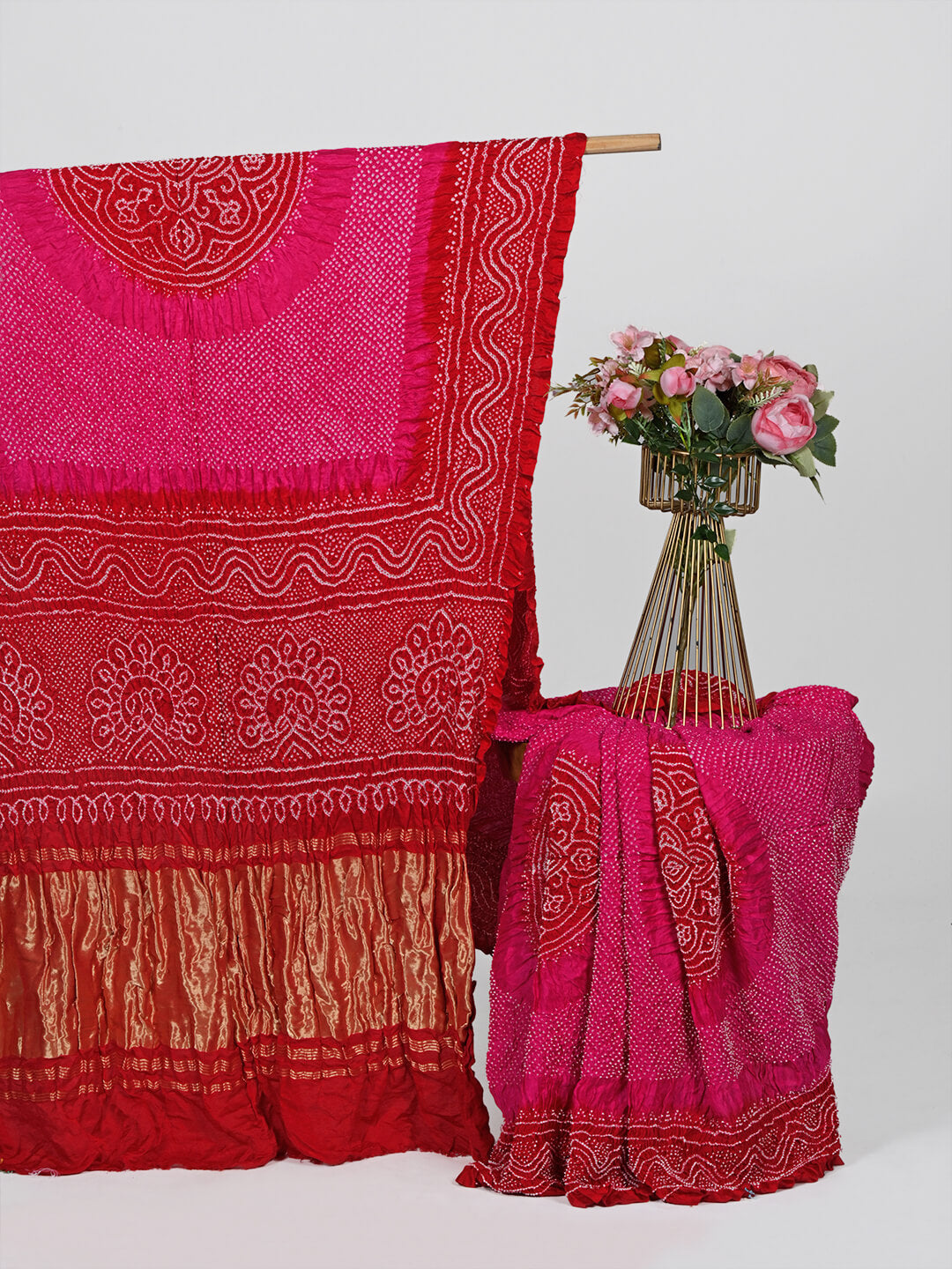Pink And Red Traditional Bandhani Saree in Gaji Silk