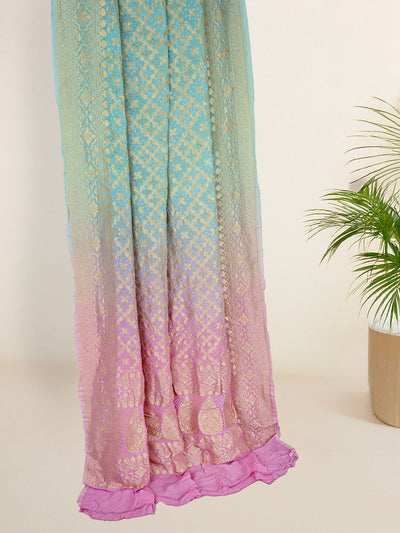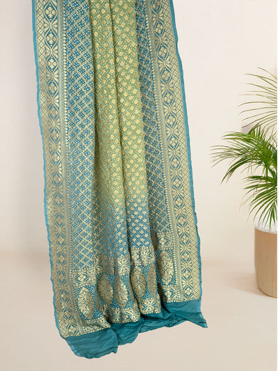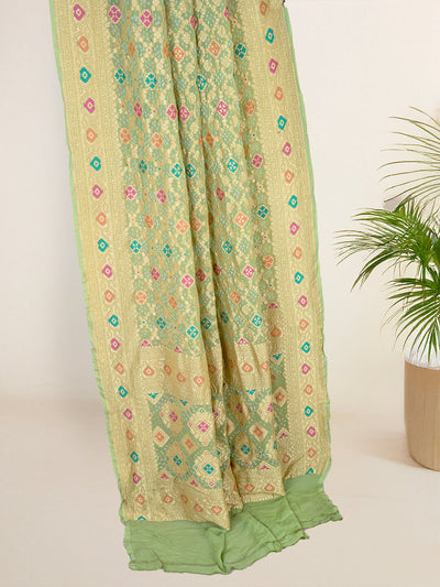 Parrot And Rama Green Minakari Bandhani Dupatta in Georgette