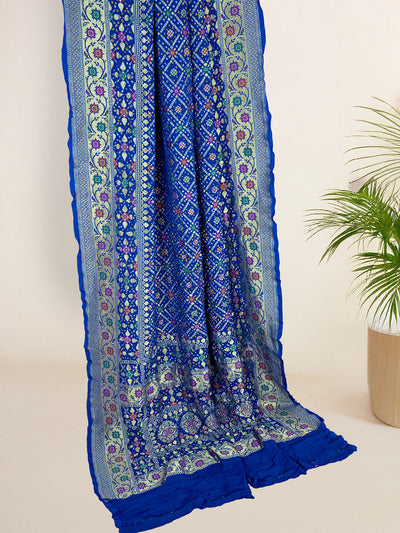 - This Minakari Bandhani Dupatta has been made with the pain staking addition of the supplementary coloured resham threads during the hand-weaving process. This adds different colours to the pattern complimenting the zari with intricate bandhani.