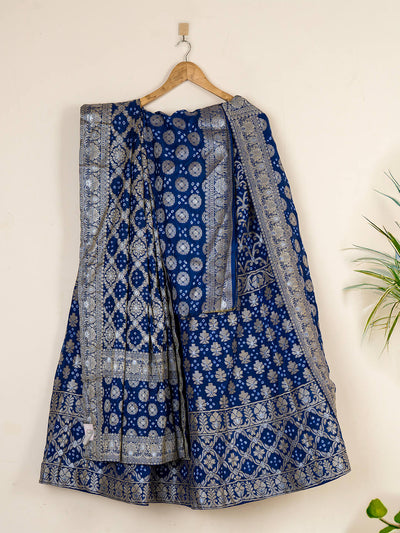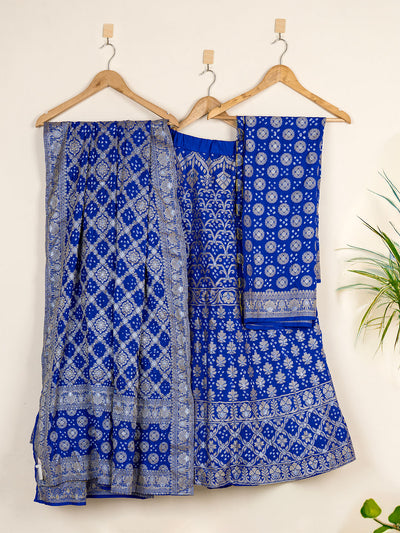 Navy Blue Bandhani Semi-Stitched Lehenga in Synthetic
