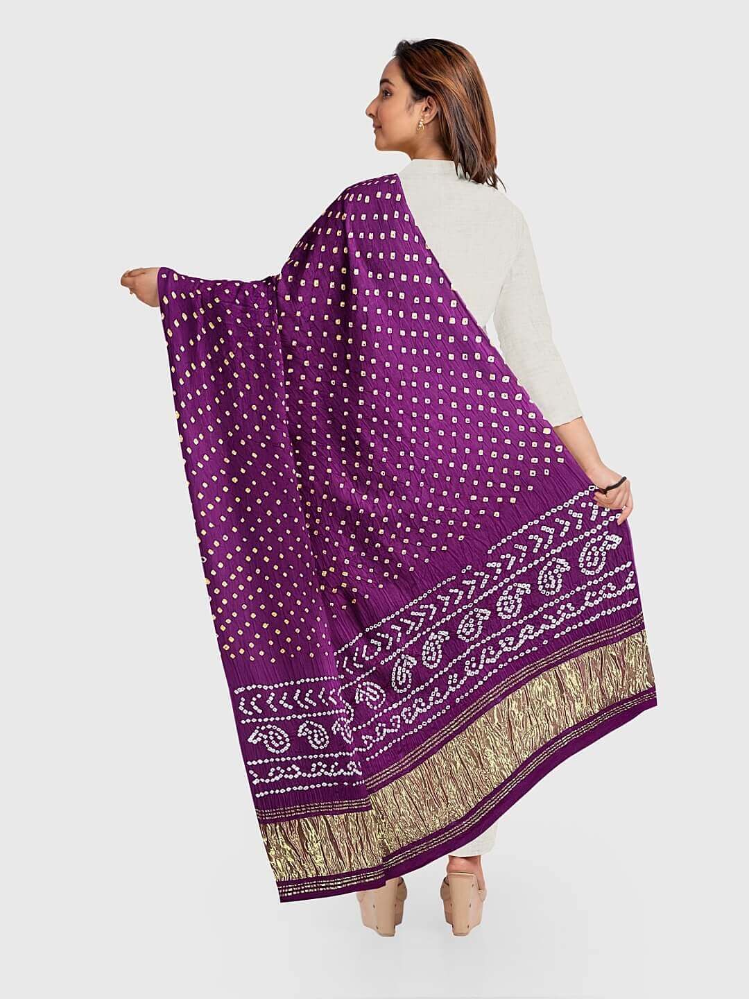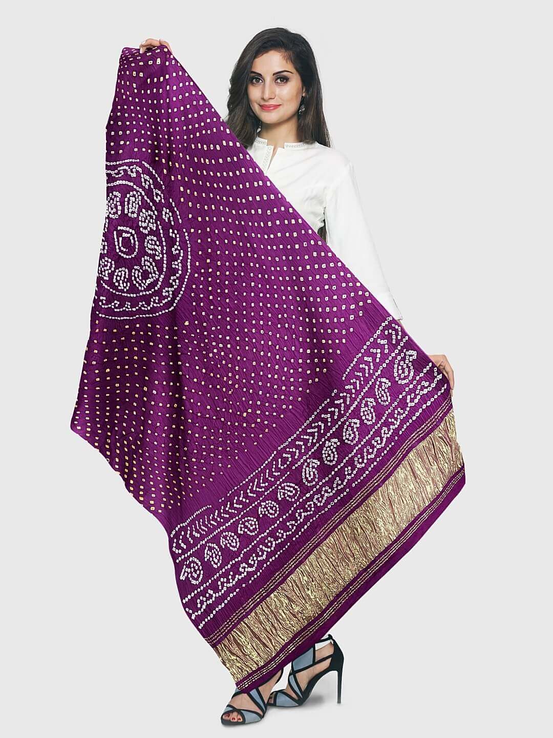 Wine Traditional Bandhani Dupatta in Modal Silk