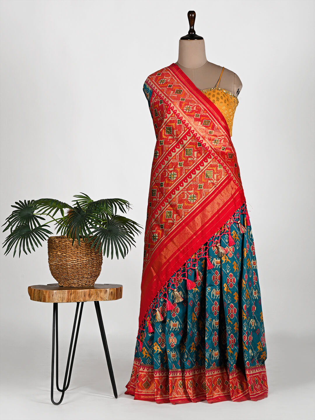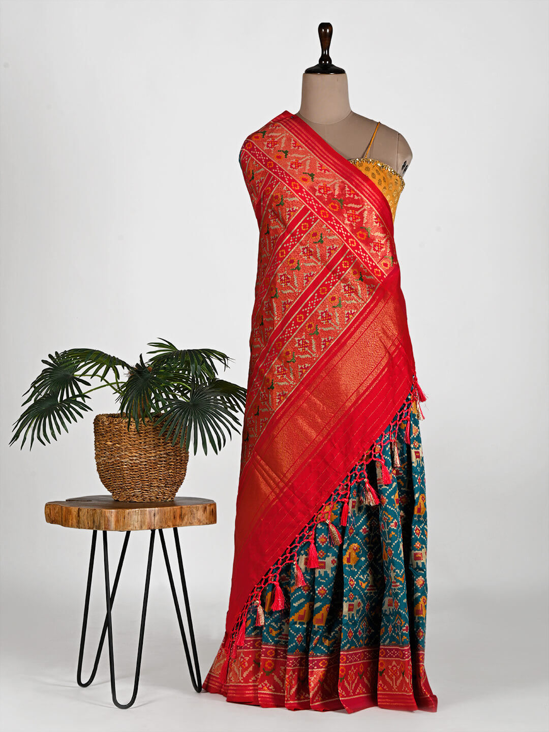 Depending upon their origin, Patola sarees basically have two varieties: Patan and Rajkot Patola. Single ikat weaves that are resist-dyed vertically is the Rajkot Patolas, while the double ikat weaves that are resist-dyed horizontally are the Pathan Patolas. The Patan Patolas are undeniably more costly as they are the most complex material design on the planet. Both sides of the texture have precisely the same design, and consequently, Patan Patola can be worn either way.