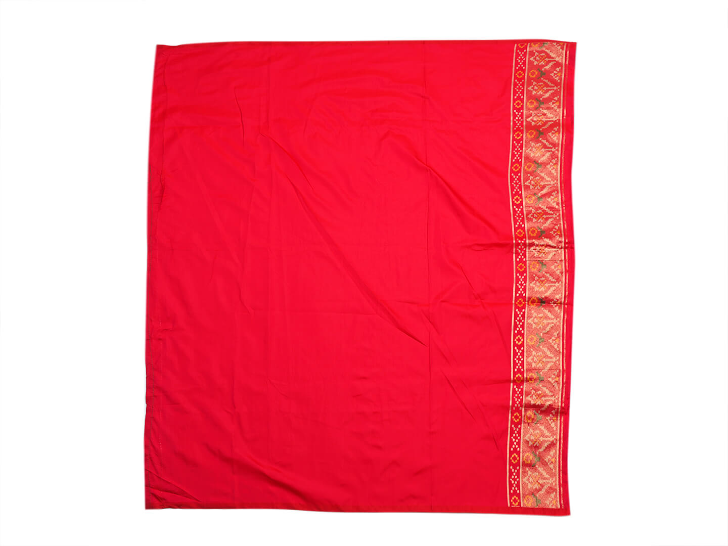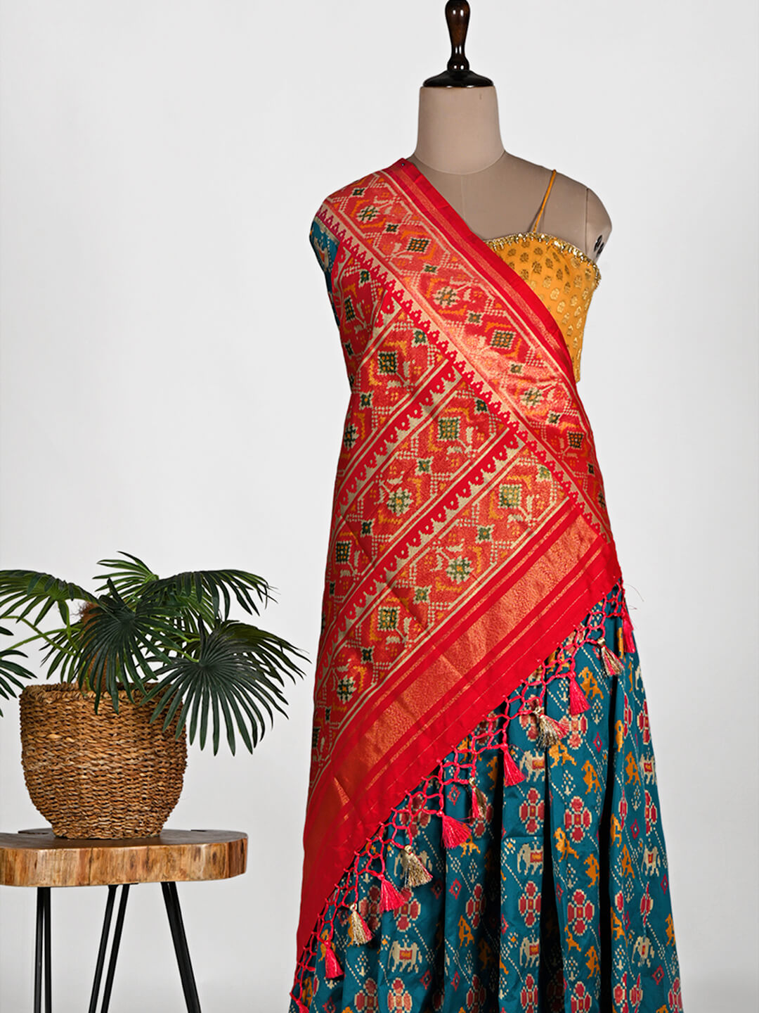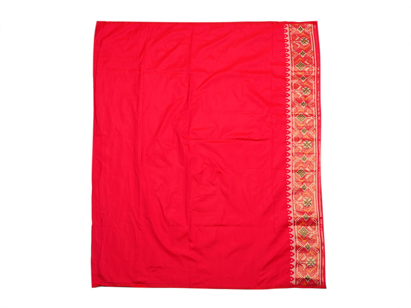 Patola is a century-old double-ended Ikat weave. The unique weaving pattern boasts its origin in Patan in the northern zone of Gujarat. The given weaving process is known to involve complicated and intricate process of tie-dyeing on the weft and wrap before weaving. It is a highly esteemed weave that receive acknowledgement by connoisseurs as both conventional and contemporary art requiring preservation.