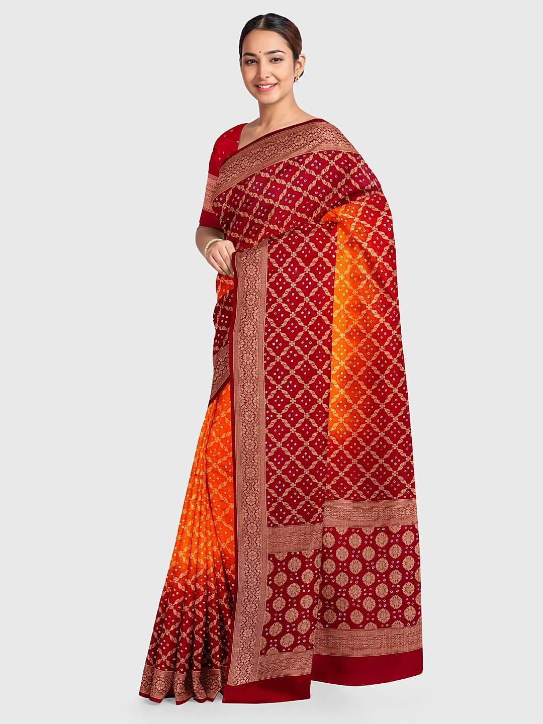 We have some awesome collections of Indian traditional saree such as Bandhani, Gharchola, Patola, Ajrak, Banarasi, PanetarLehria and Kutchi. Some are topped up with zari work, and others are known for their classic prints. Just make sure to visit for the amazing saree collection we have in store! You will surely fall in love with it.