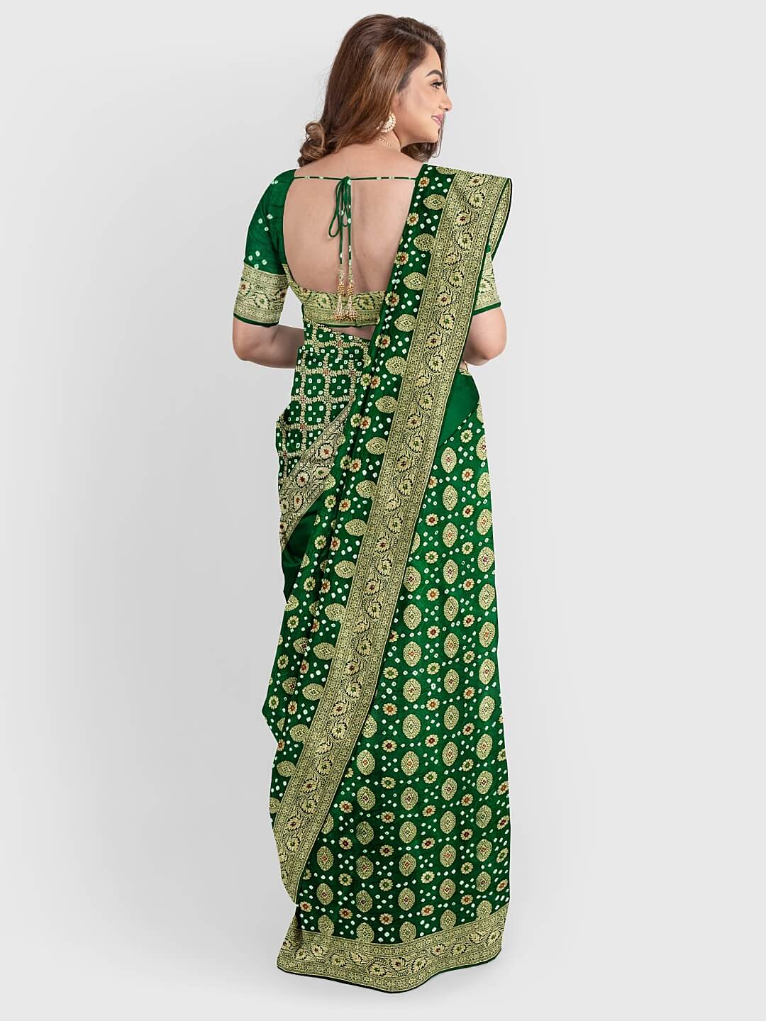 This amazing Bararasi sari comes in synthetic form, which will make the entire product light in weight and too good to be true! Even the dark green colour represents the Mehendi shade, which is pretty symbolic in an Indian wedding. So, whenever you are aiming toward wedding silk sarees, this one might be another option to give out a try!