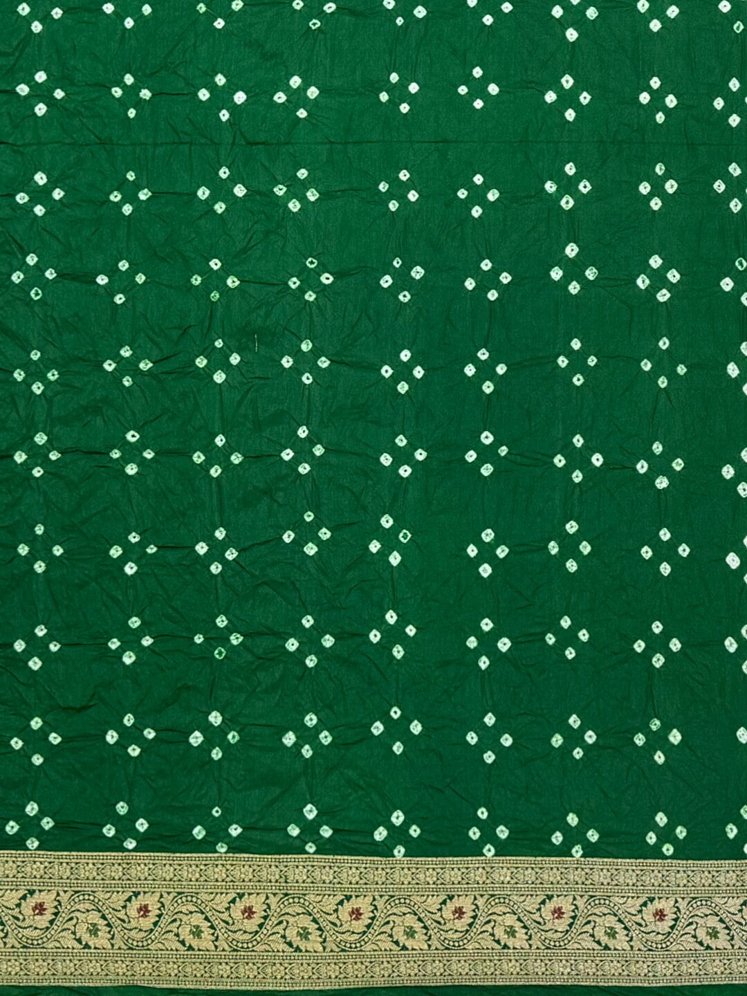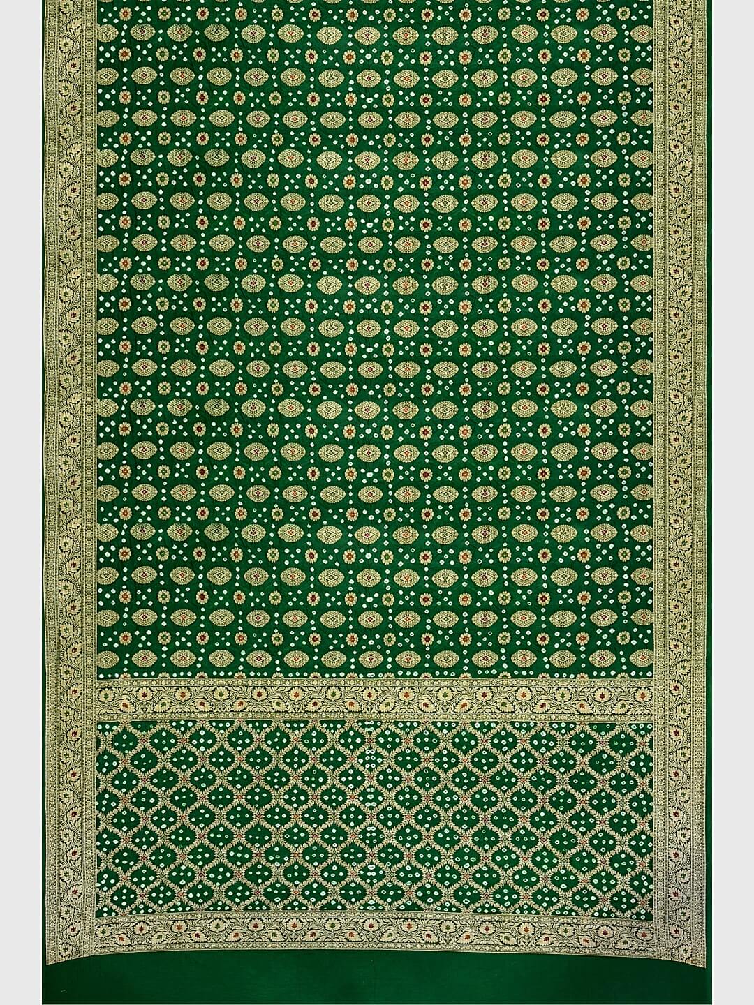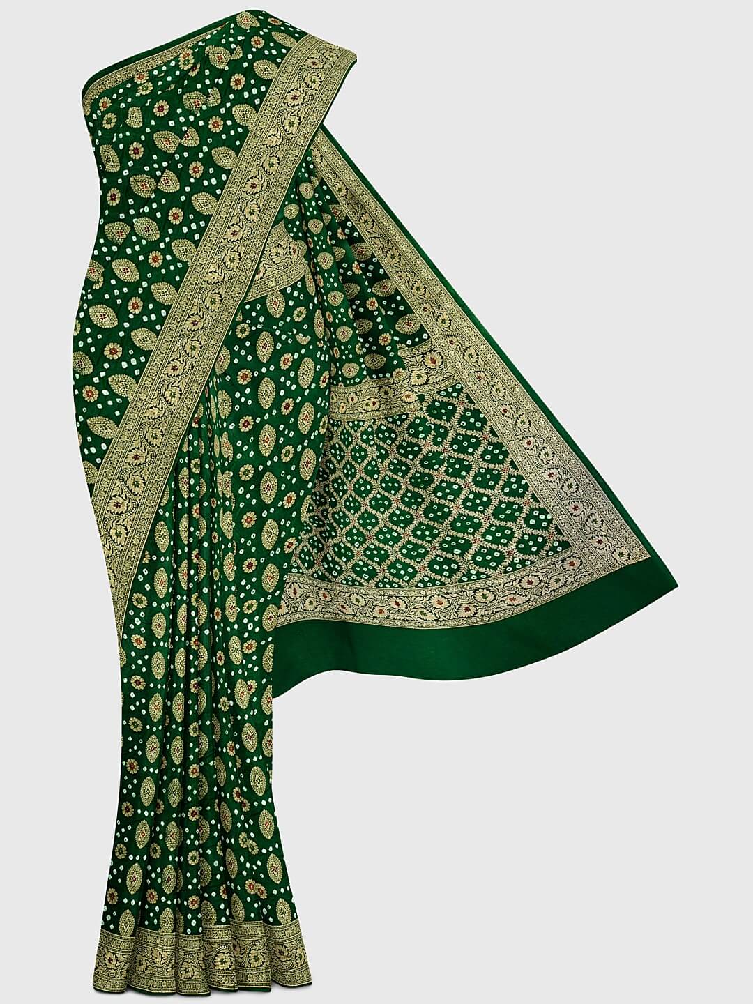 • Mehendi Embroidered Banarasi Saree In Synthetic: