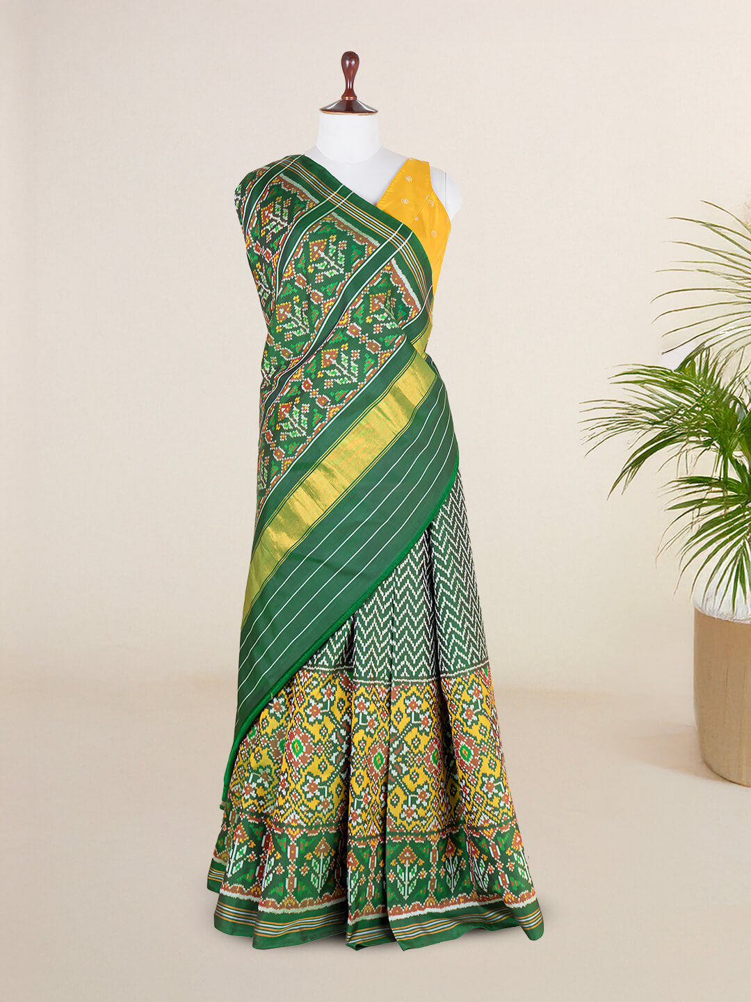 Sea Green And Green Ikkat Patola Saree in Pure Silk