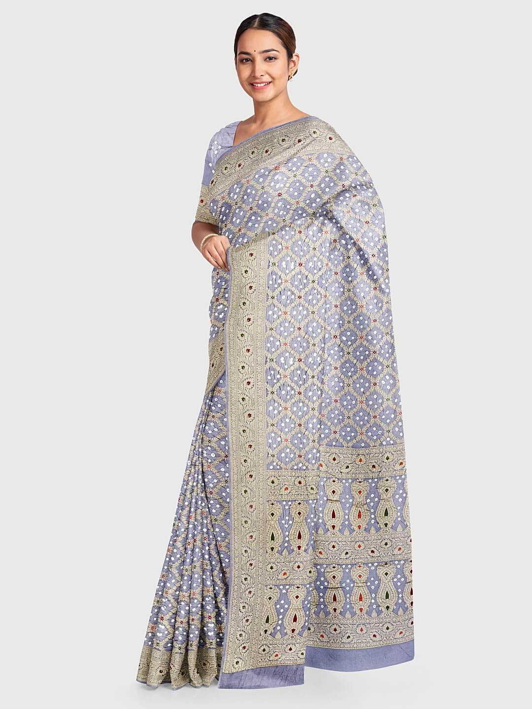 We have some awesome collections of Indian traditional saree such as Bandhani, Gharchola, Patola, Ajrak, Banarasi, Panetar, Lehria and Kutchi. Some are topped up with zari work, and others are known for their classic prints. Just make sure to visit for the amazing saree collection we have in store! You will surely fall in love with it.