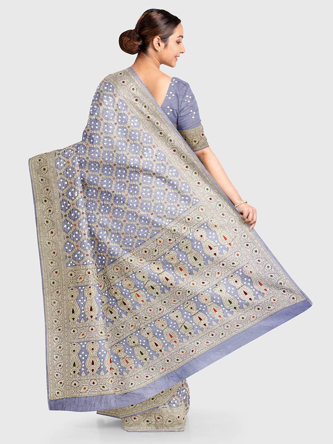 - Morpeach Embroidered Banarasi Saree In Synthetic: