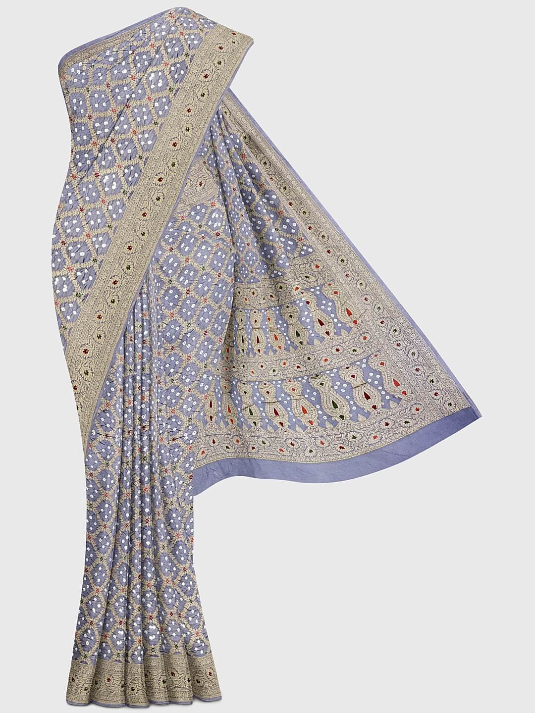 - Mehendi Embroidered Banarasi Saree In Synthetic: