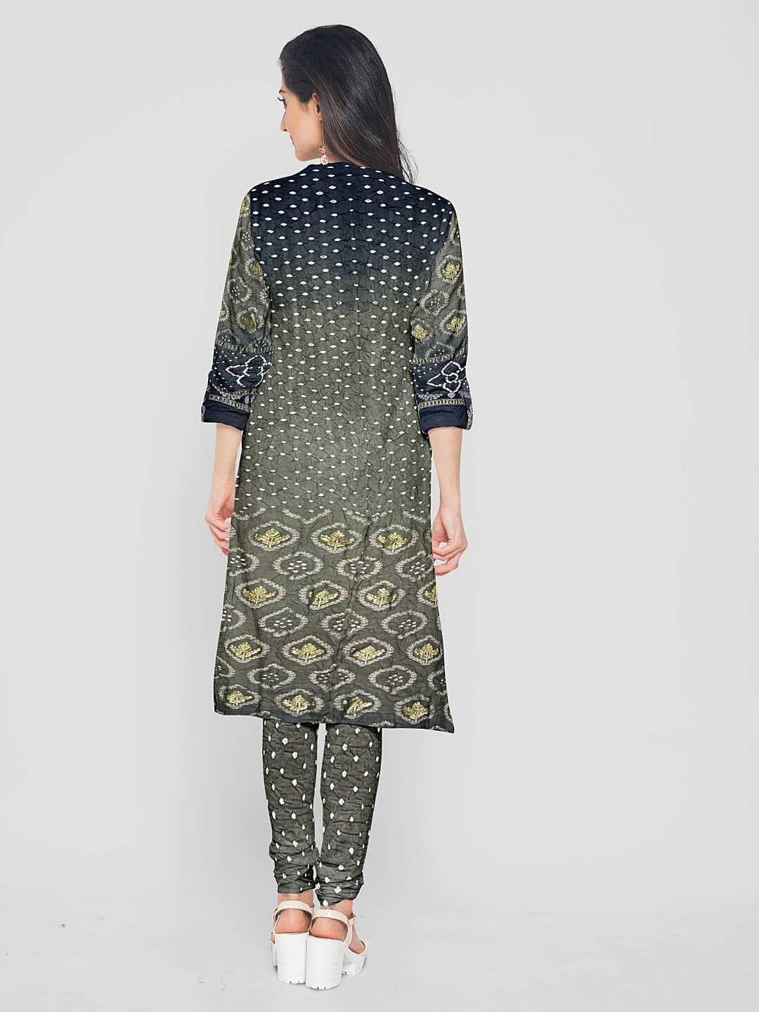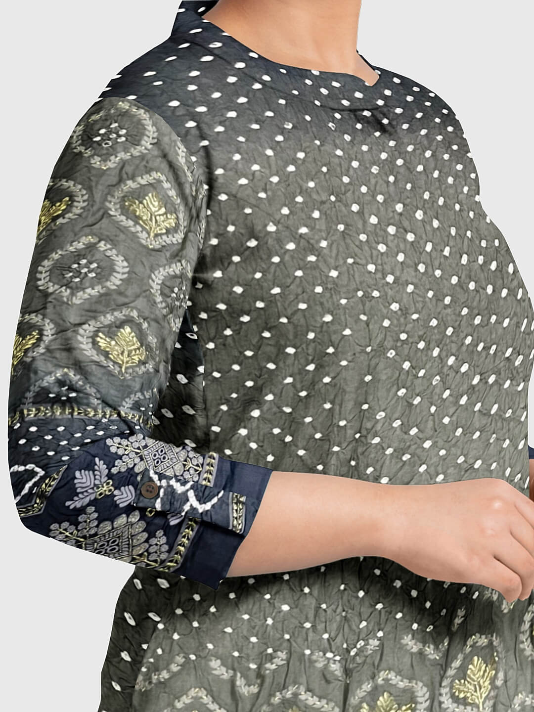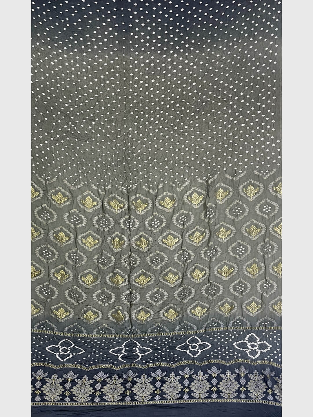 Grey Banarasi Bandhani Unstitched Suit in Modal Silk