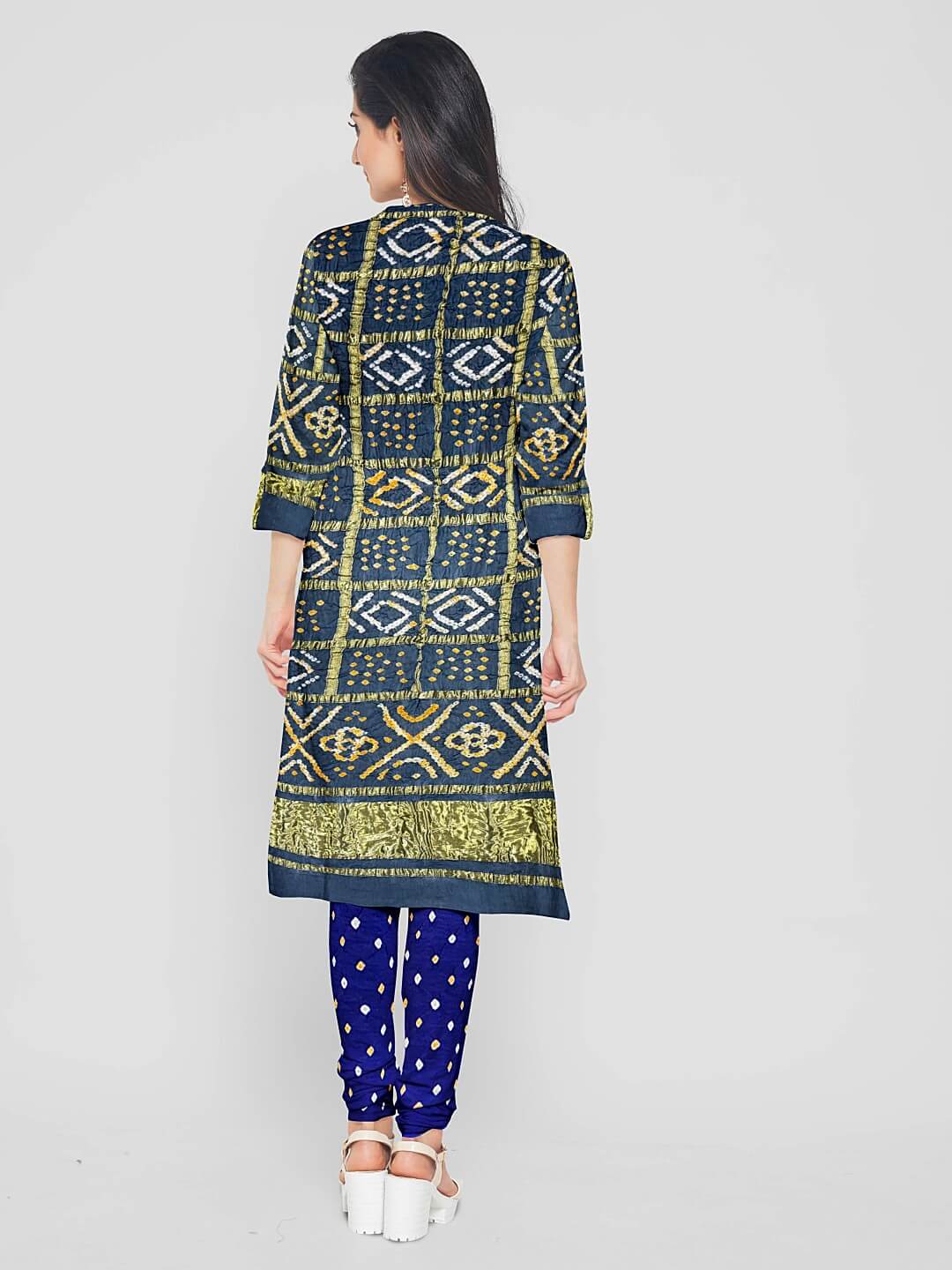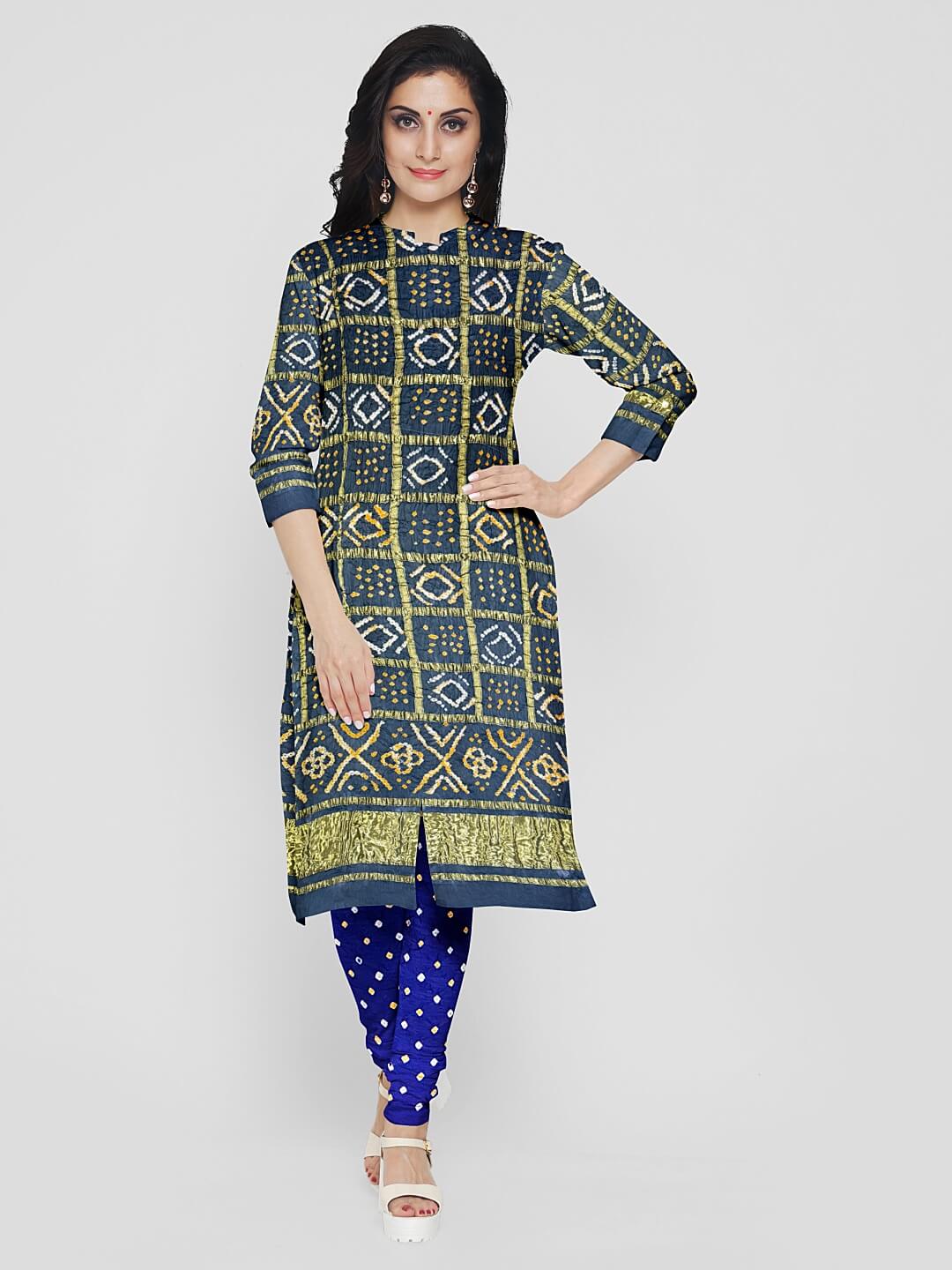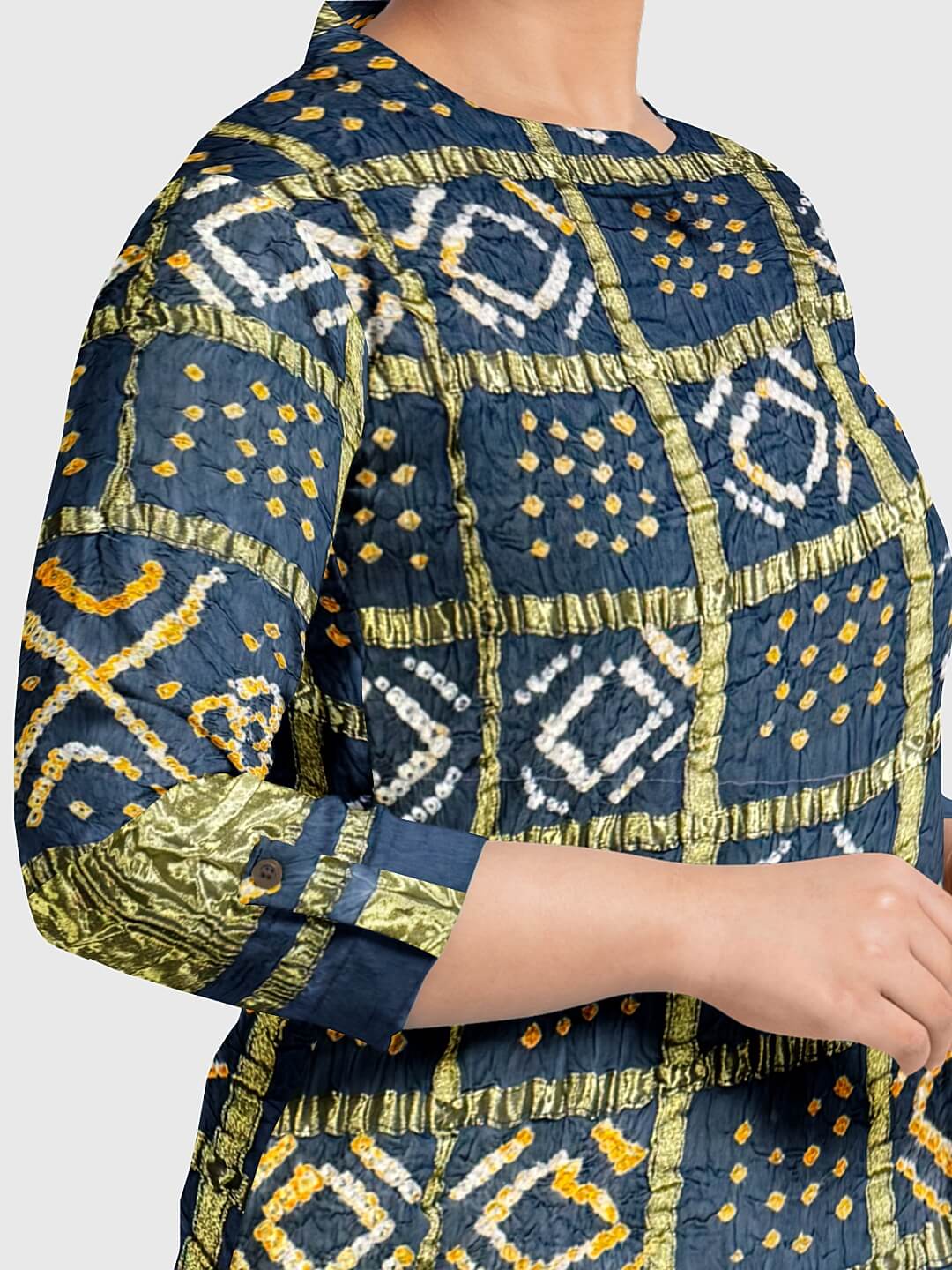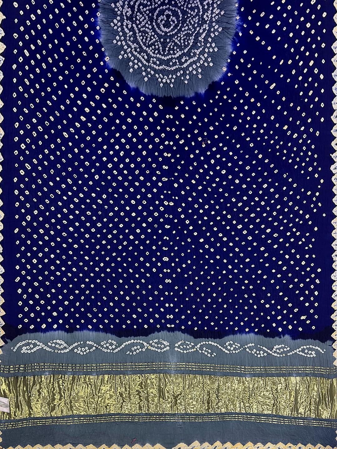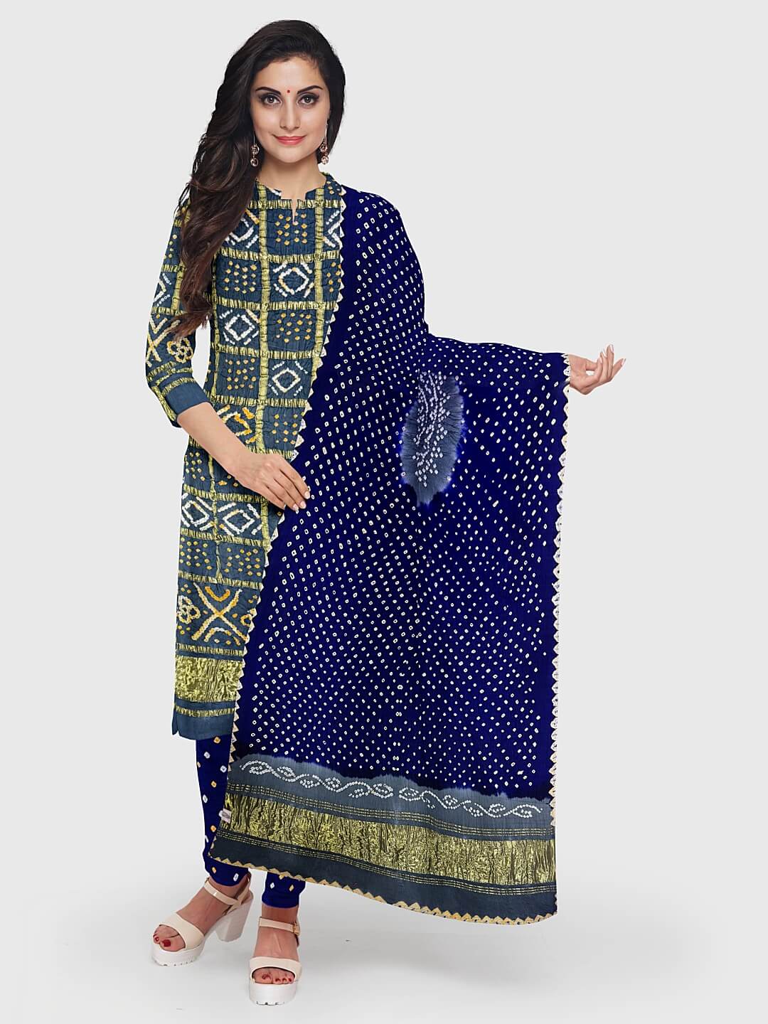 Grey And Navy Blue Traditional Bandhani Unstitched Suit in Modal Silk