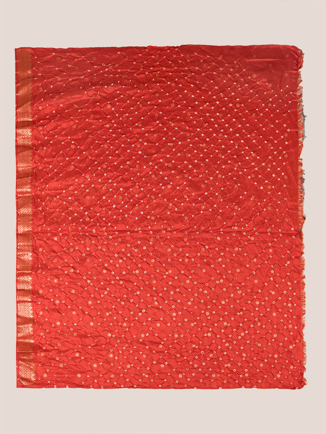 • This Saree is a fusion of Paithani and bandhani.The Pallu and Border of the Saree is Inspired by our Favouite Paithani weave with all traditional motives. This Saree has been tied-dyed in the Classic Kutchi Bandhani technique.